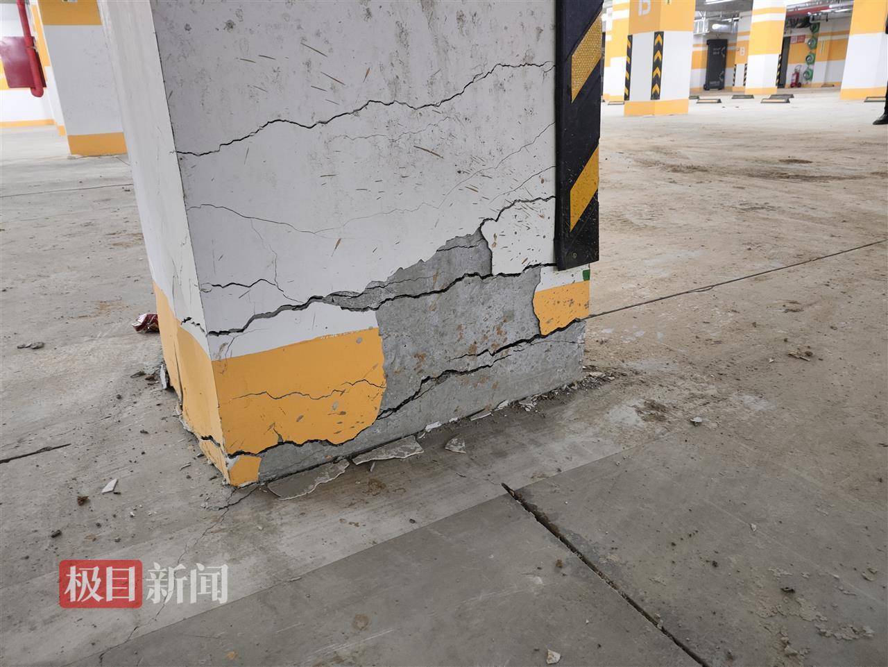 11月4日,河北张家口市万全区荣盛城A5区业主在网上反映,小区地下车库地面出现沉降及裂缝,墙面及立柱还存在大面积的开裂,居民担心楼栋有安全隐患。5日上午,该小区业主告诉极目新闻记者,小区是2023年6月交付的商品房小区,至少半年前,业主们就相继发现地库有沉降和墙体开裂的情况,随后问题越来越严重。当地住建部门工作人员告诉极目新闻记者,此前已接到相关情况反映,开发商已委托第三方机构进行鉴定,初步结果将在近几日公布。
